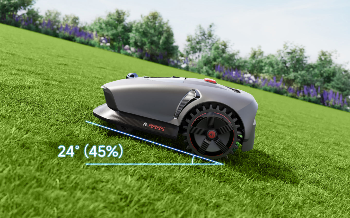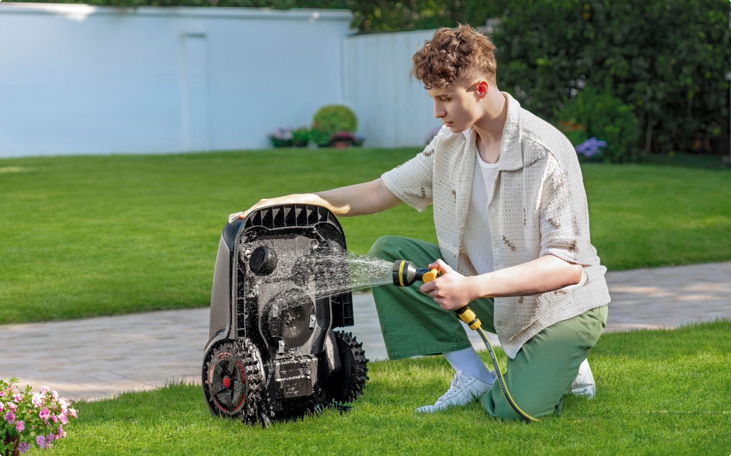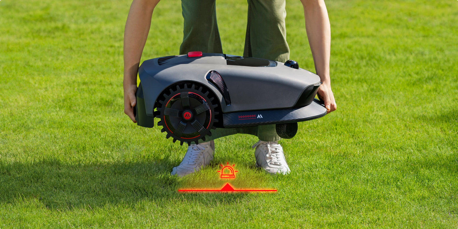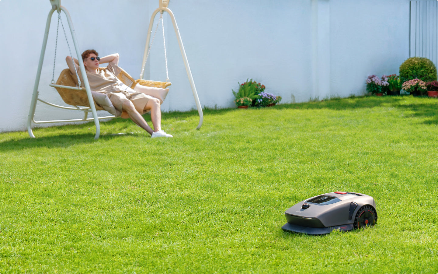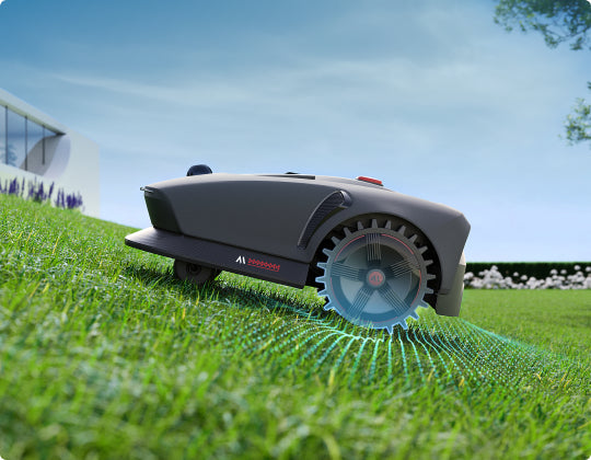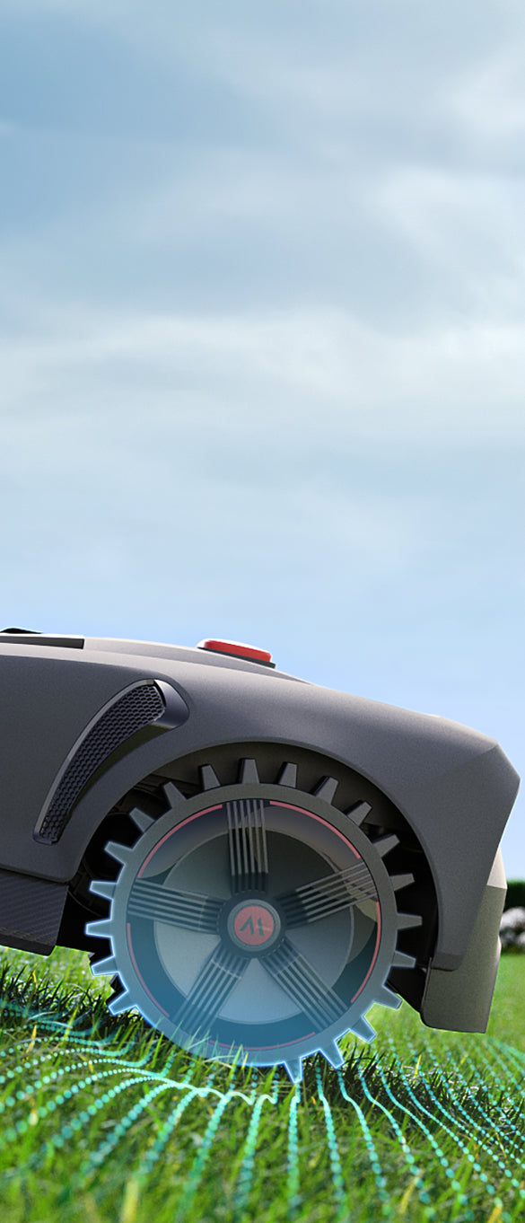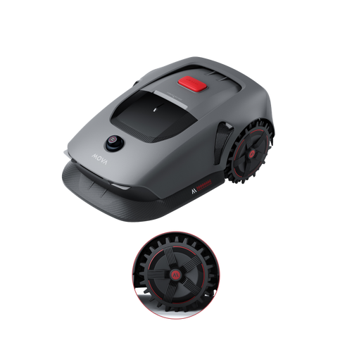 MOVA 1000 har slitesterke offroad-hjul som gir overlegen trekkraft, noe som reduserer sannsynligheten for at klipperen glir i skråninger eller på flatt underlag og beskytter klipperen. Denne utformingen minimerer skader på plenen for en mer skånsom mildere og effektiv klipp.