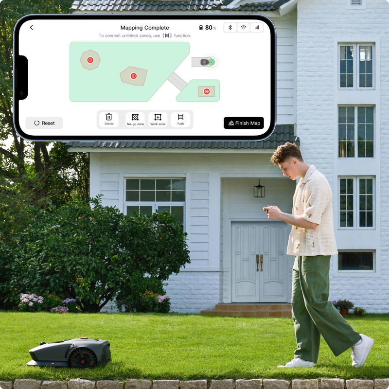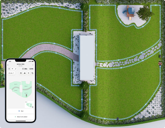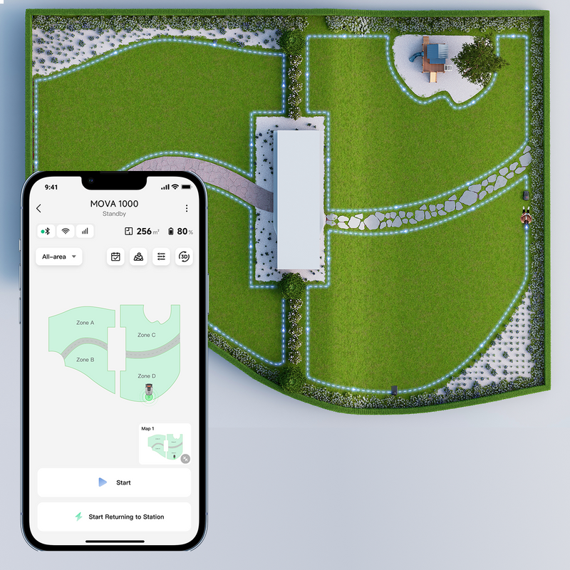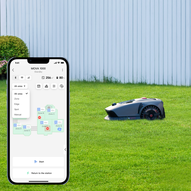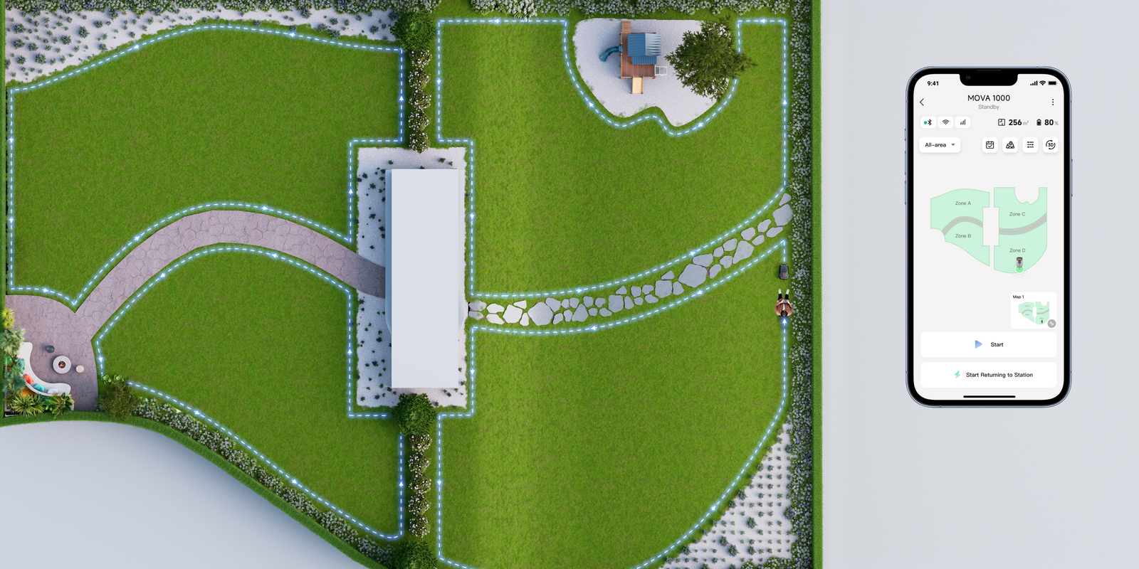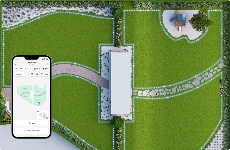 Angi forbudsområder, for eksempel svømmebasseng og anlagte hager, ved hjelp av appen. MOVA 1000/600 vil intelligent unngå disse angitte sonene for en jevn klippeopplevelse.