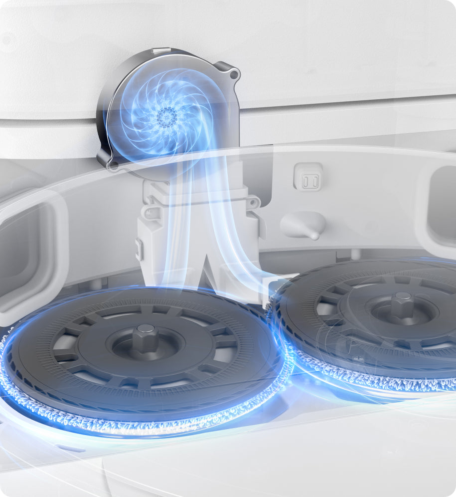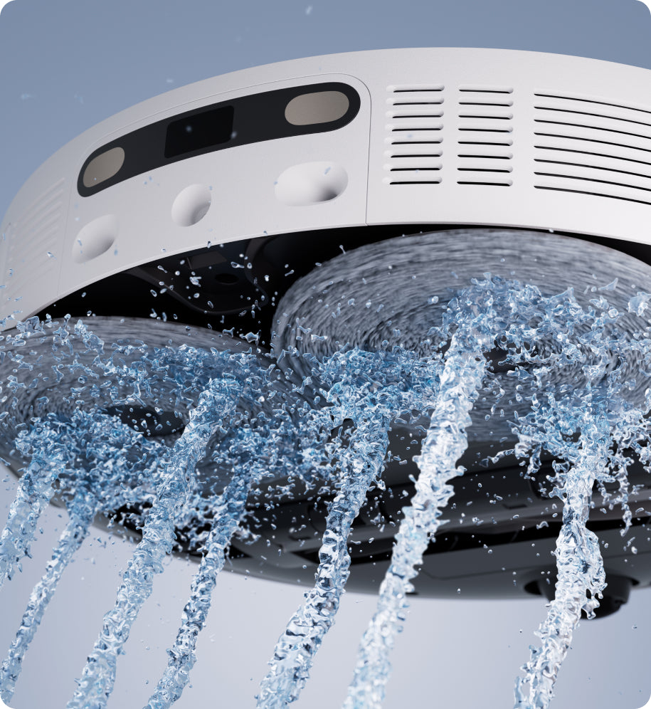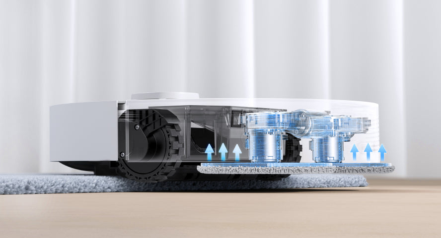 *10,5 mm moppeheving: Høydeforskjellen på robotstøvsugeren er 10,5 mm før og etter moppeheving. For tepper med hår som er lengre enn 3 mm, foreslår vi at du stiller inn roboten slik at du unngår tepper med middels eller lange hår via rengjøringsappen (kun under intelligent rengjøring i teppemodus) og beskytter teppene mot å bli våte.**Dobbel rengjøring av tepper: Bare i intensiv tepperensmodus.