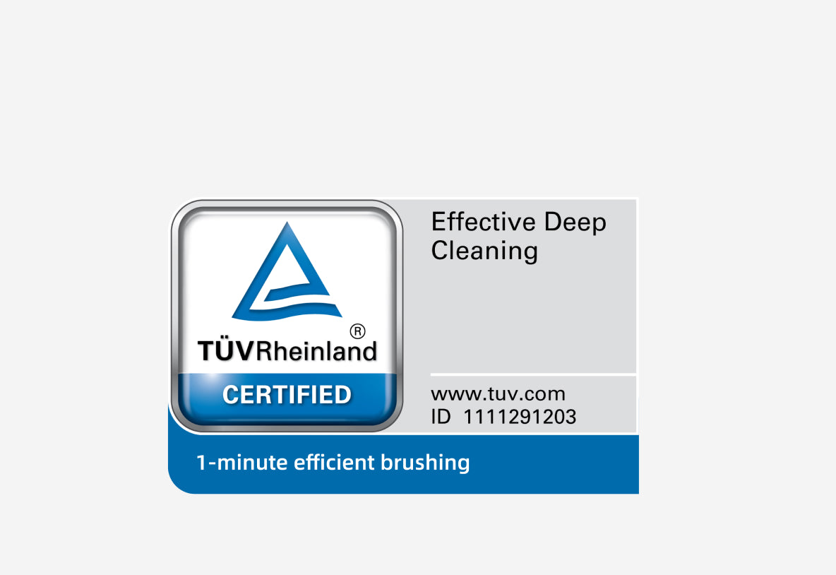 *Effektiv fjerning av plakk og fjerning av mat som er fanget mellom tennene: sertifisert av TÜV Rheinland.