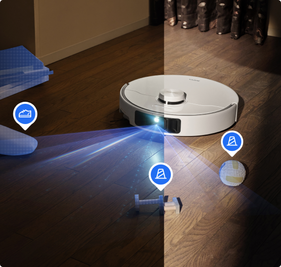 Gled deg over jevn navigering i alle rom med P50 Pro Ultra. Disse robotstøvsugerne klatrer over terskler på opptil 22 mm og håndterer baderomsavsatser effektivt samtidig som de unngår hverdagslige hindringer som klær, sko med mer.
