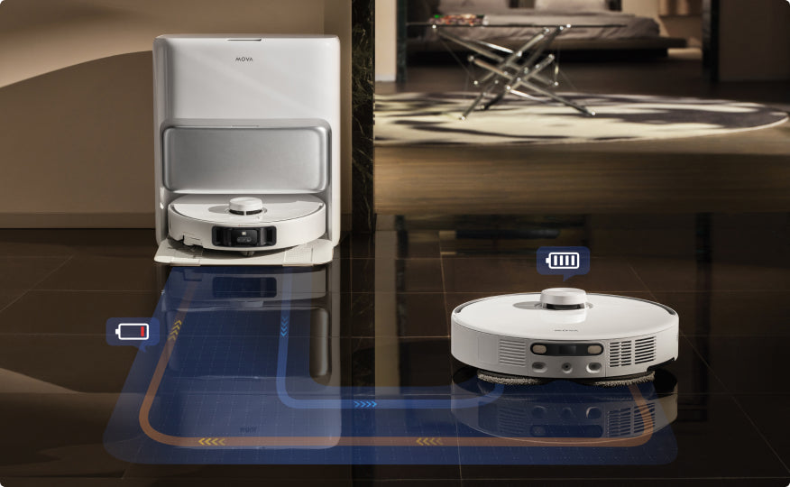 Dykk ned i en kontinuerlig rengjøringsopplevelse med P50 Pro Ultra. Batteriet på 5200 mAh håndterer store hjemmeområder, enten den støvsuger tepper eller tørker opp klissete flekker. Robotstøvsugeren returnerer til dokkingstasjonen for å lade opp og gjenoppta rengjøringen, mens lading når strømmen er billigst* bidrar til lavere strømregninger.