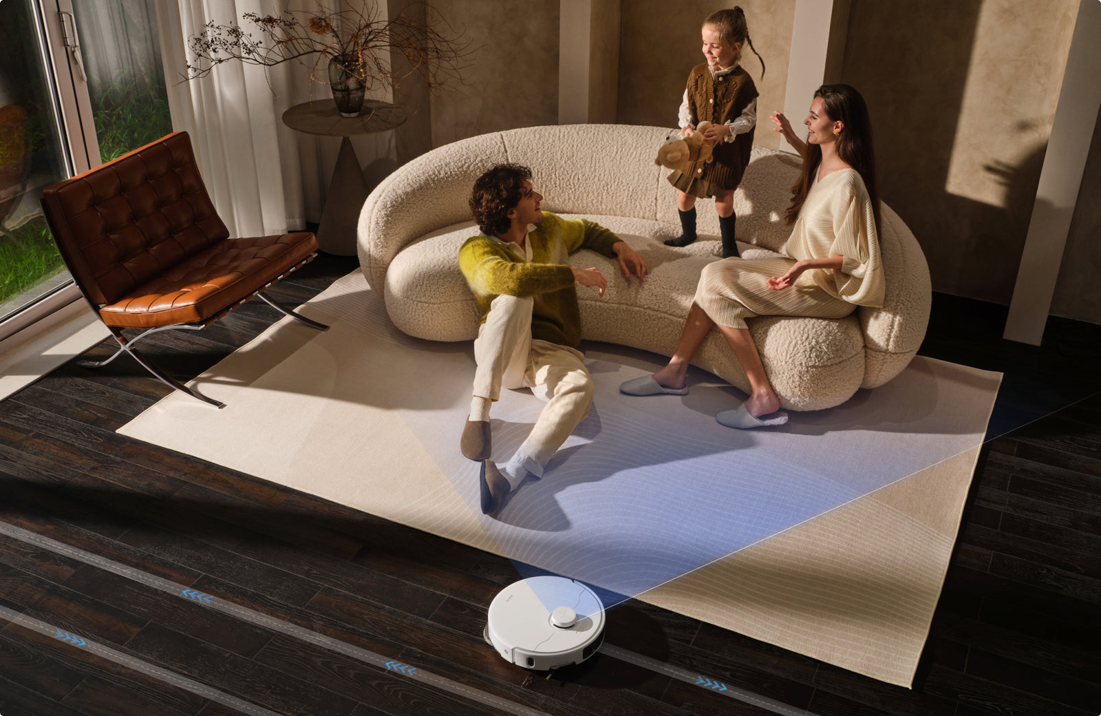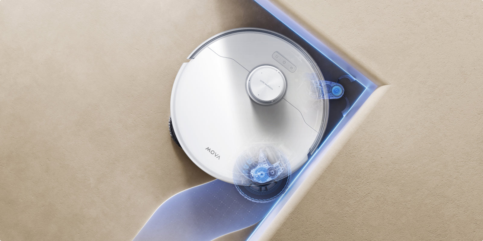 Med et LED-lys med høy synlighet manøvrerer P50 Pro Ultra gjennom en dag eller natt, og plukker uanstrengt opp smuss i mørke rom.