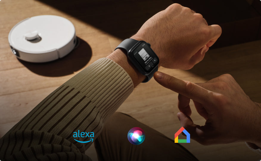 Få tilgang til og planlegg rengjøring og spor fremdriften med ett ord fra Apple Watch* og andre enheter.
