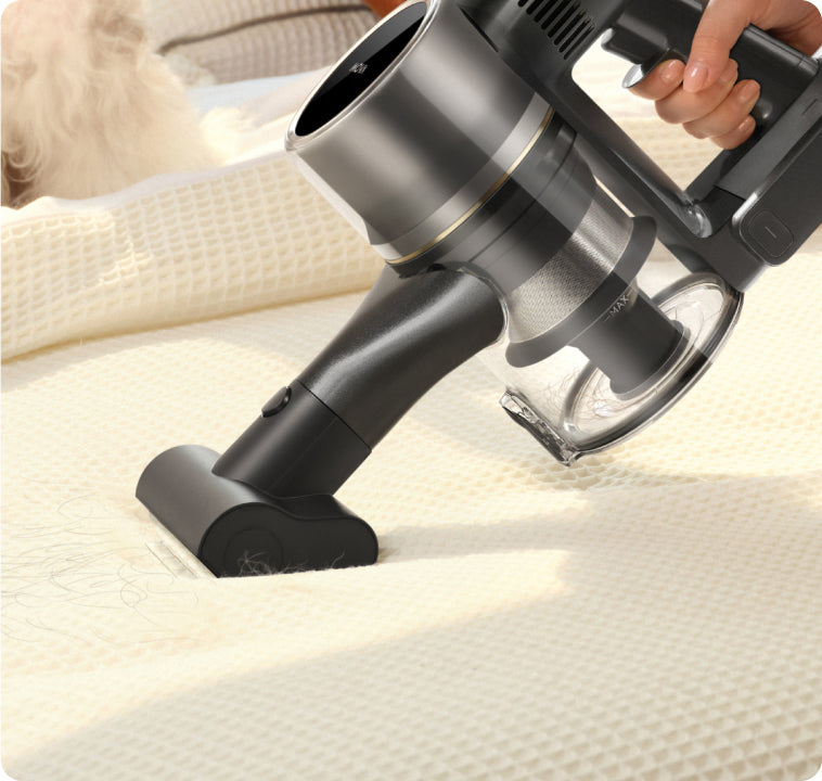 Feier opp dyrehår og støv med roterende strimler og fjerner effektivt flass fra møbeltrekk.