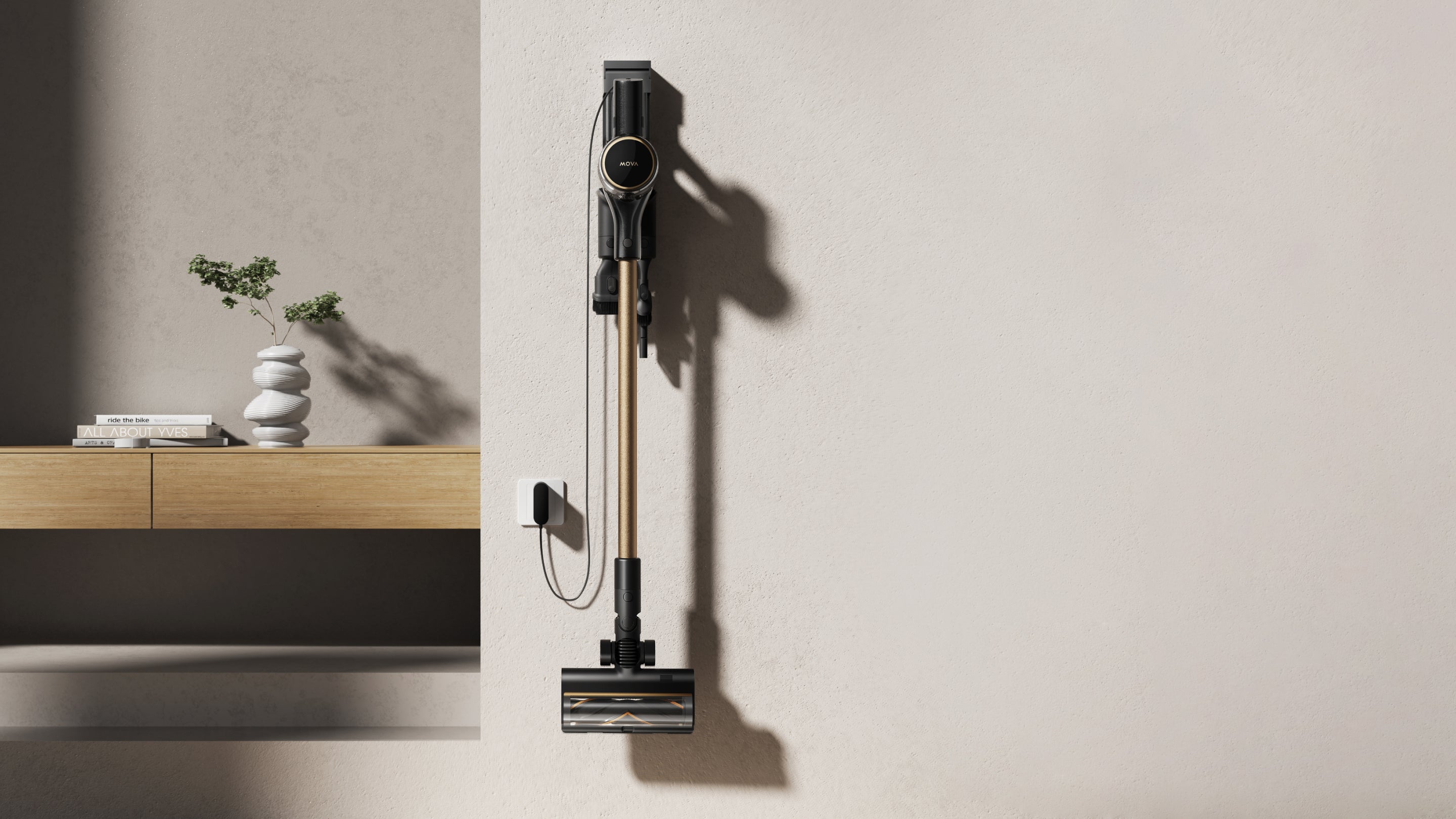 Det veggmonterte ladestativet holder støvsugeren oppreist, noe som sparer plass og legger til rette for praktisk lading når som helst samt reduserer behovet for å lete etter en stikkontakt.