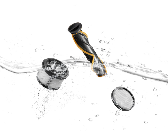 Rullebørsten og filteret er avtagbare og kan vaskes, noe som sikrer sømløst vedlikehold. Filteret kan enkelt fjernes og installeres for praktisk vedlikehold.