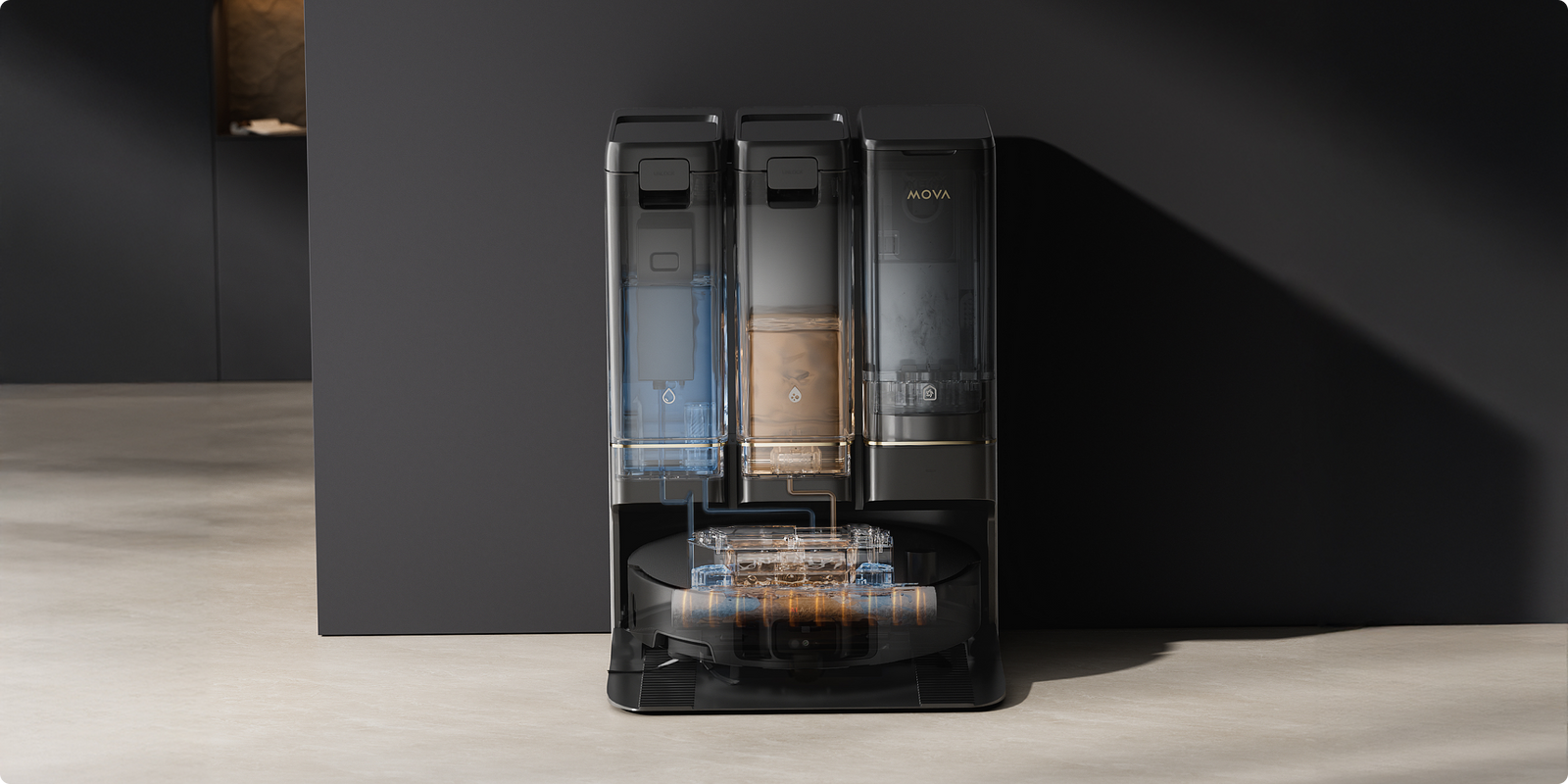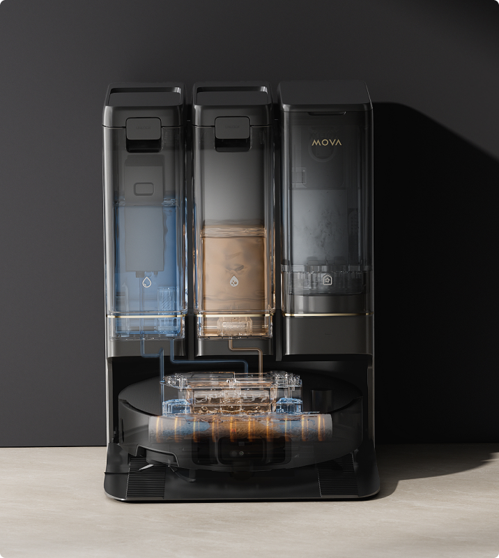 * "Foretrukket løsning” refererer til MOVAs rengjøringsløsning som er mer effektiv og bedre egnet for de angitte scenarioene. Det antyder ikke at MOVA er den beste løsningen på markedet. Faktisk ytelse kan variere avhengig av faktorer som miljø og bruksforhold.