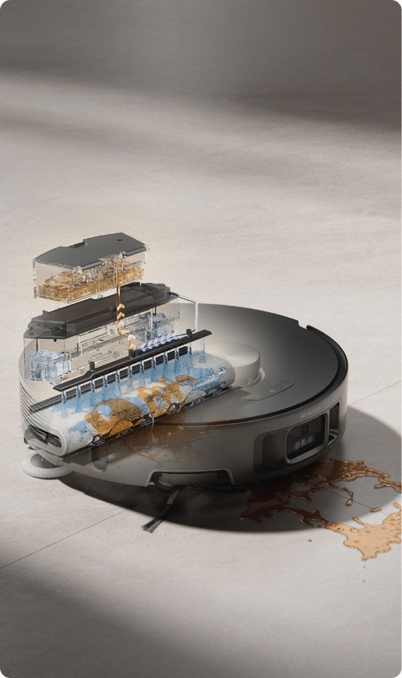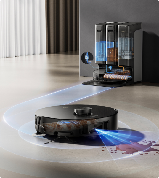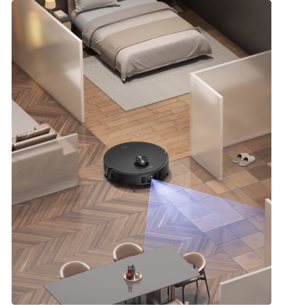 Utstyrt med selvkjørende LiDAR og KI-drevet kikkertsyn, navigerer den enkelt i komplekse hjemmemiljøer, planlegger ruter, unngår hindringer og beveger seg jevnt. Kan gjenkjenne over 160 hindringstyper*, inkludert 100 % ledningsdeteksjon, for sikker og effektiv rengjøring.